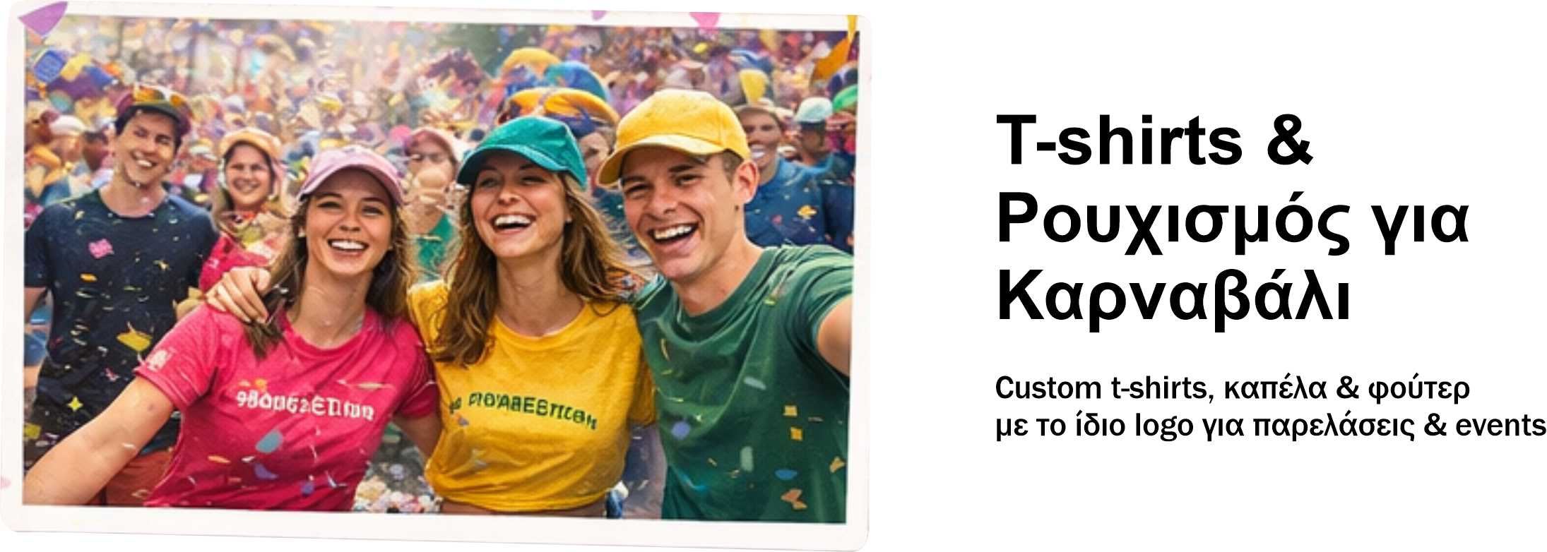 Ένα concept. Μια ομάδα. Ενα look. Αναλαμβάνουμε τον καρναβαλικό ρουχισμό της ομάδας σας με custom εκτύπωση, ειδικά για μαζικές παραγγελίες.